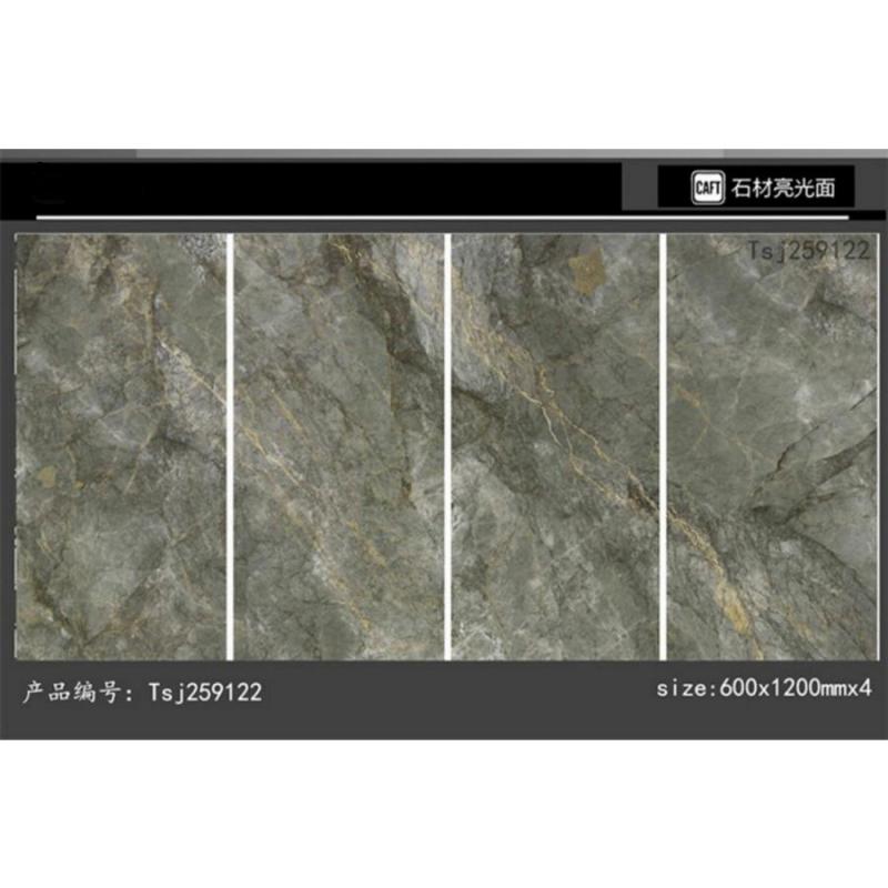 El diseño de la superficie refleja las características de la piedra natural con vetas doradas bien definidas. La distribución de las vetas luce equilibrada y sobria, en lugar de excesivamente decorativa. Esto hace que la baldosa sea ideal para proyectos de interior tanto residenciales como comerciales.
