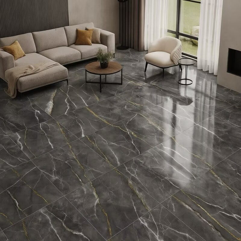 La superficie presenta un refinado diseño similar al mármol que aporta un toque lujoso a cualquier espacio interior. Sus suaves vetas crean un aspecto natural y atemporal, ideal para hogares modernos. Su atractivo visual la convierte en la opción preferida para realzar suelos residenciales.