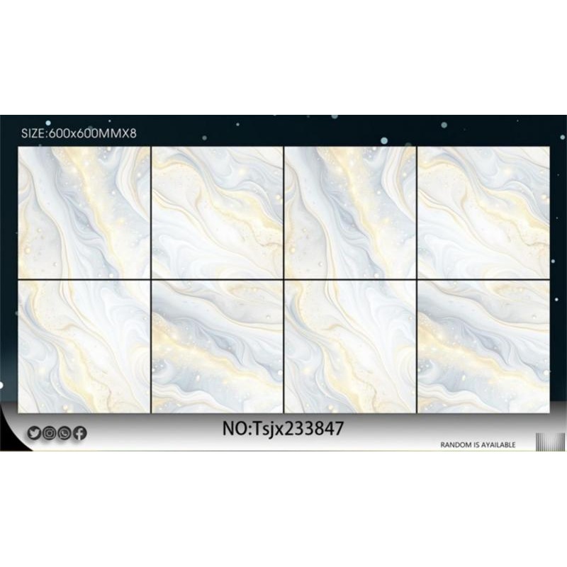 Created to solve the issue of interior flooring that lacks character and refined detailing, this tile features a glossy surface with elegant vein patterns that enhance visual interest. The smooth finish helps improve light distribution and creates a more polished and upscale atmosphere. Suitable for interior flooring in residential homes, hotels, offices, boutiques, and various commercial spaces.
