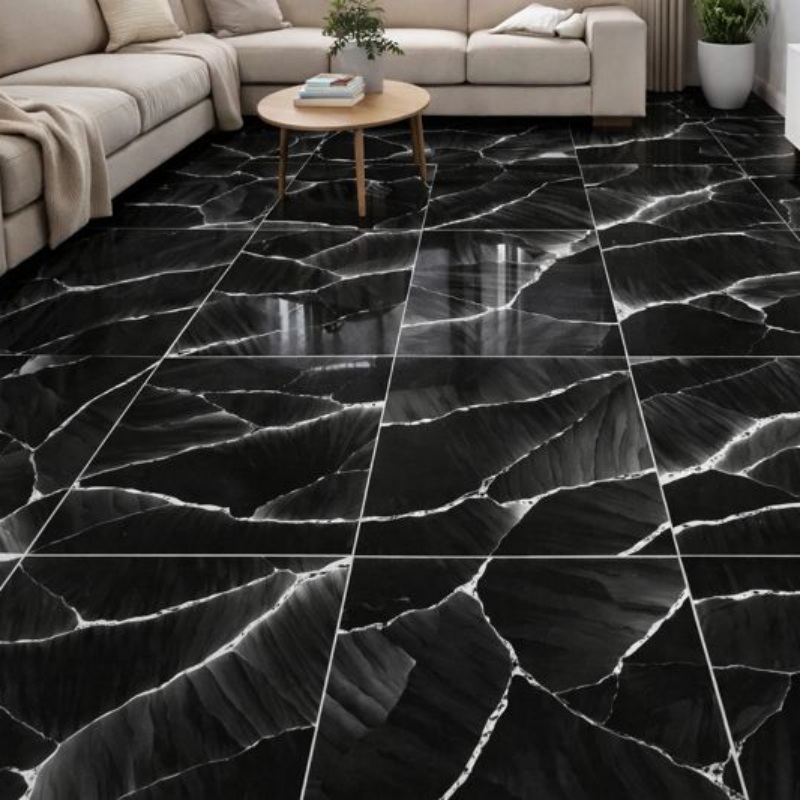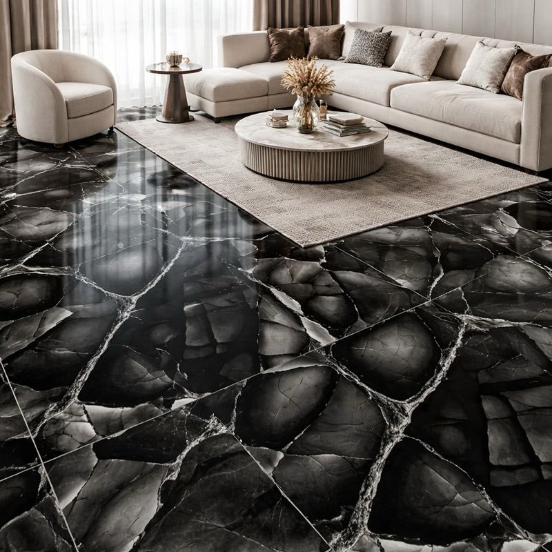 El diseño estilo mármol negro ofrece una apariencia limpia y elegante, ideal para interiores modernos. Las sutiles vetas aportan profundidad sin sobrecargar el espacio. El acabado general ayuda a crear una atmósfera equilibrada y de alta calidad.