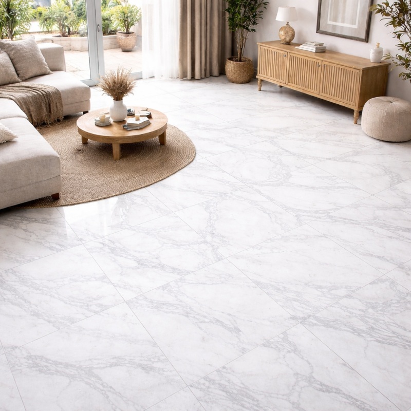 The neutral white marble-look design matches various interior styles. It blends well with modern, classic, and luxury decoration themes. It is suitable for living rooms, bedrooms, hotels, offices, and commercial spaces.