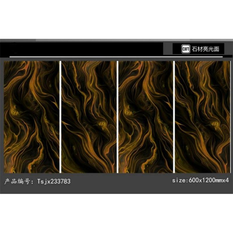 La superficie brillante, combinada con detalles de vetas doradas, ofrece una apariencia refinada y lujosa. Realza la luminosidad del espacio y añade profundidad a los suelos interiores. Este efecto visual complementa conceptos de decoración de interiores de alta gama.