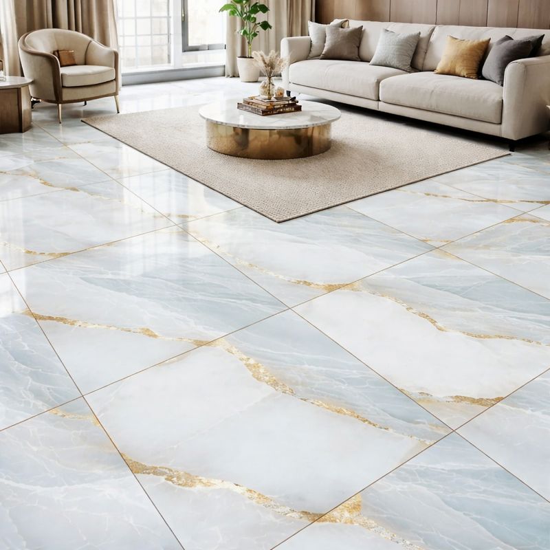 La superficie presenta un efecto mármol equilibrado con sutiles líneas doradas. El patrón crea profundidad sin sobrecargar el espacio. Combina a la perfección con estilos de interior modernos y clásicos.