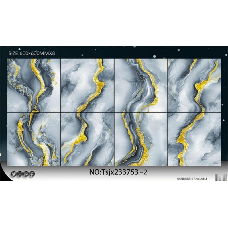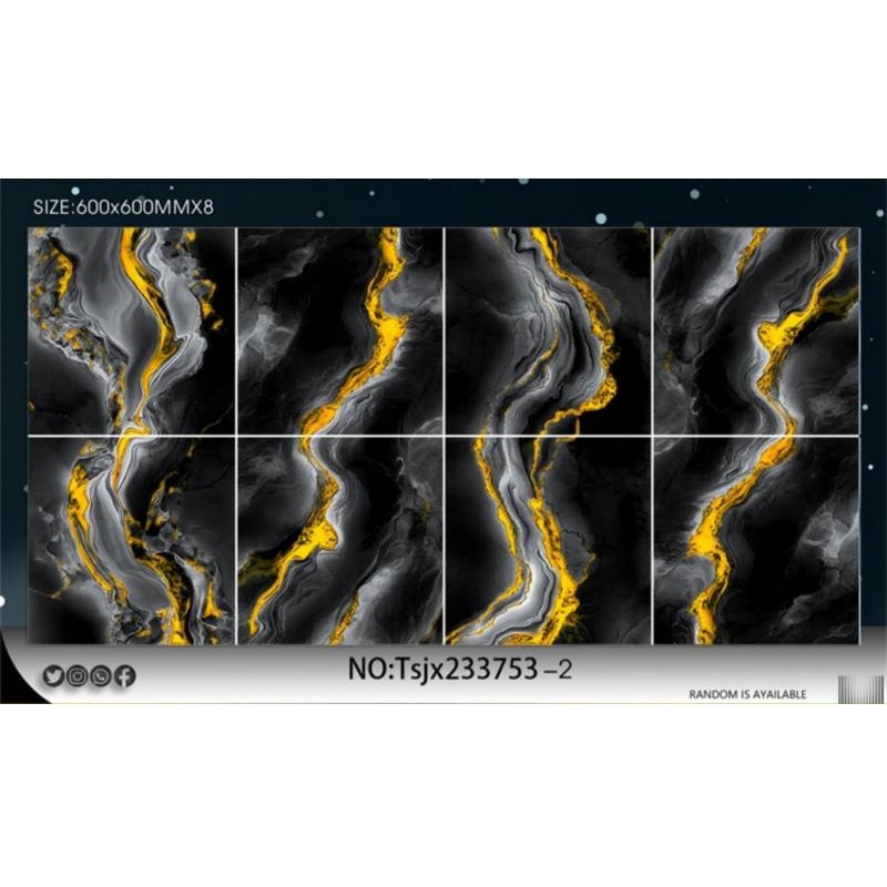 Designed to address interior design challenges such as lack of visual impact and limited decorative depth, this tile provides a refined and eye-catching solution. The polished surface combined with a dark tone and gold-inspired detailing enhances brightness while creating a strong and elegant atmosphere. Suitable for feature walls, decorative surfaces, and high-end residential or commercial interior applications.