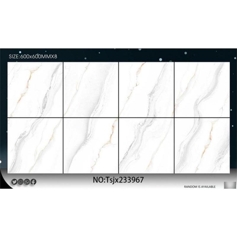 Diseñado para solucionar el problema de los suelos interiores que carecen de luminosidad y atractivo decorativo, este azulejo presenta una superficie pulida con un patrón que imita la piedra, lo que realza el efecto visual general. Su acabado de alto brillo crea una apariencia lisa y luminosa, a la vez que garantiza un rendimiento fiable para el uso diario. Ideal para suelos interiores en hoteles, apartamentos, oficinas, salas de exposición y otros entornos residenciales o comerciales.
