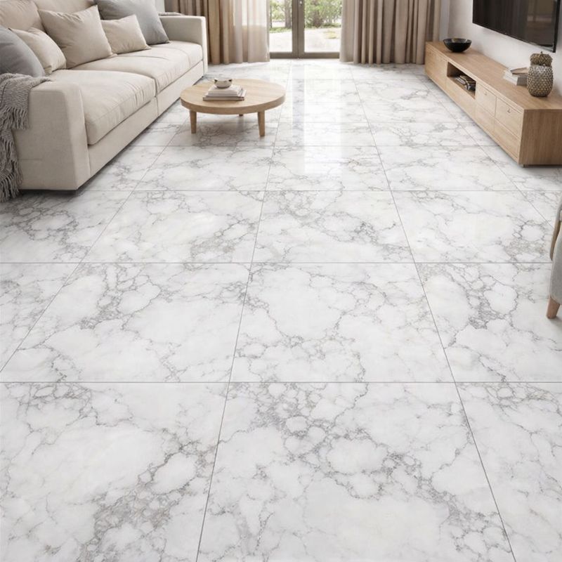 El azulejo presenta un diseño limpio de mármol blanco con vetas sutiles, lo que le da un aspecto sofisticado. El acabado brillante realza la belleza natural del patrón. Este diseño combina a la perfección con diversos estilos de interior, desde el clásico hasta el contemporáneo.
